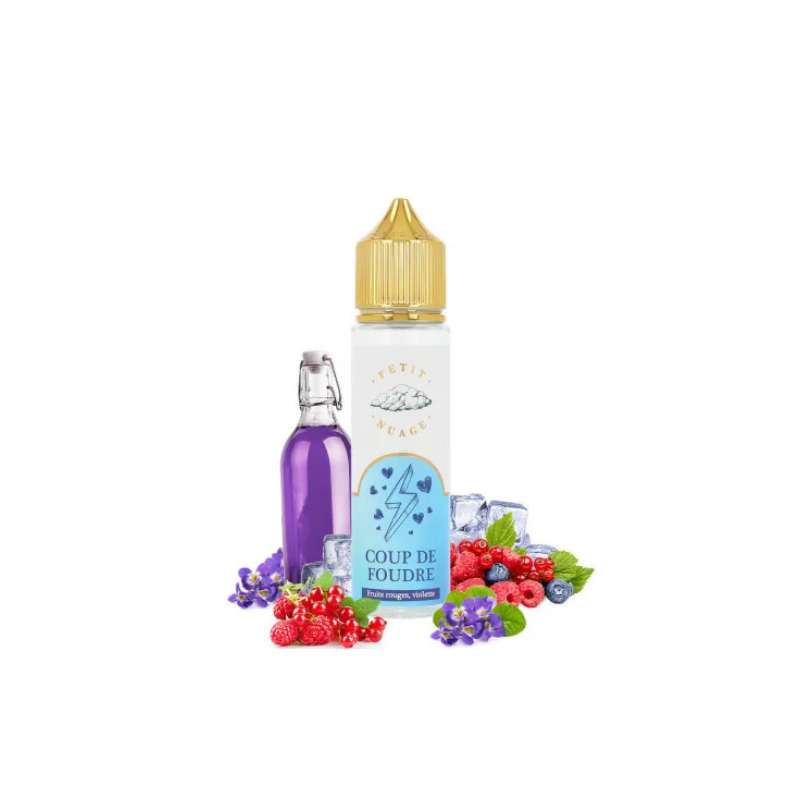 La célèbre marque Petit Nuage Shortfill nous invite à découvrir son eliquide Coup de Foudre. Cette préparation française est l'occasion de retrouver les saveurs complexes des fruits rouges. Riches en goûts, ces derniers sont associés à quelques violettes aux notes franches. Petit Nuage dévoile une mixture fruitée et florale qui se singularise par son équilibre sans faille.